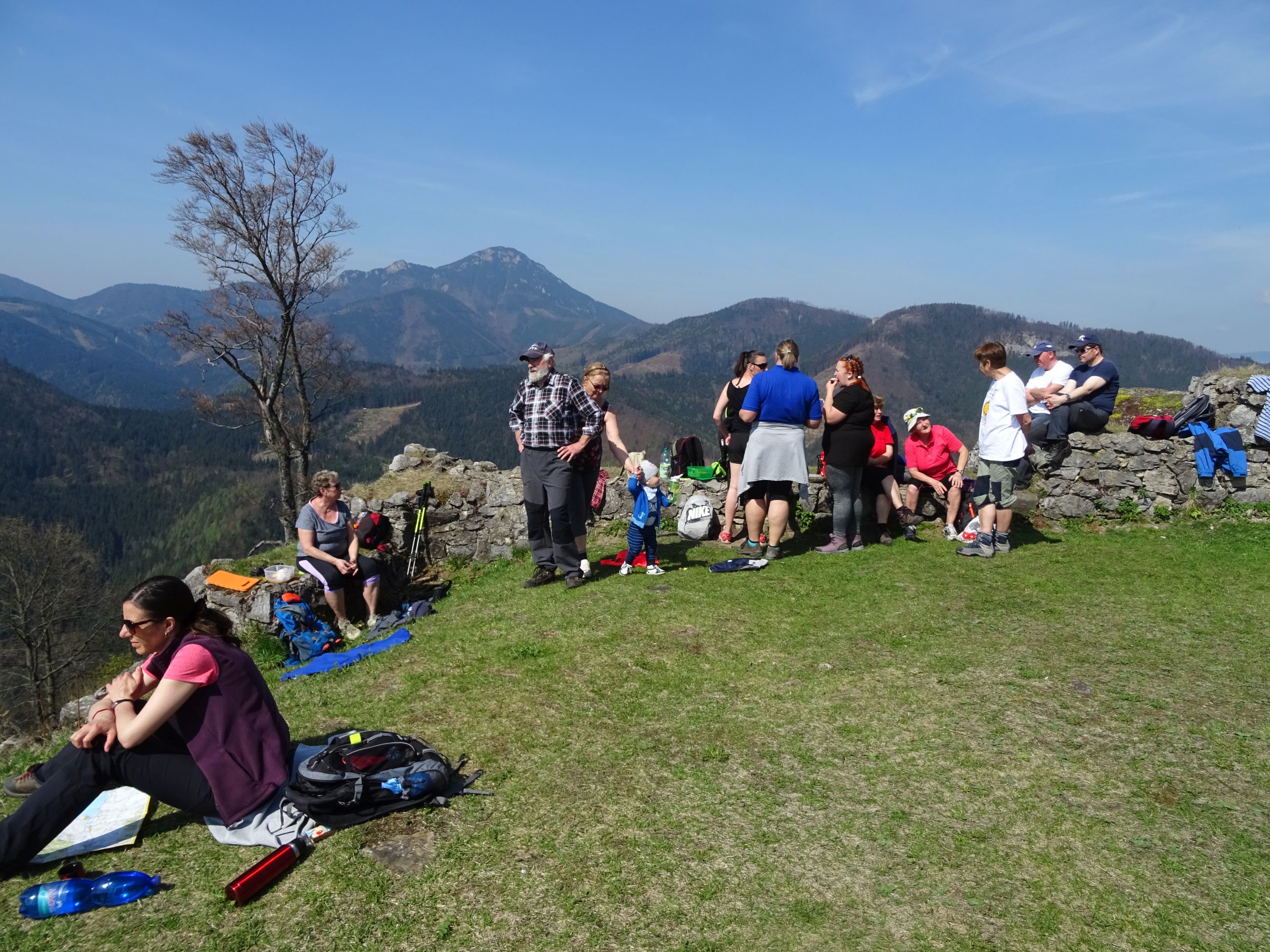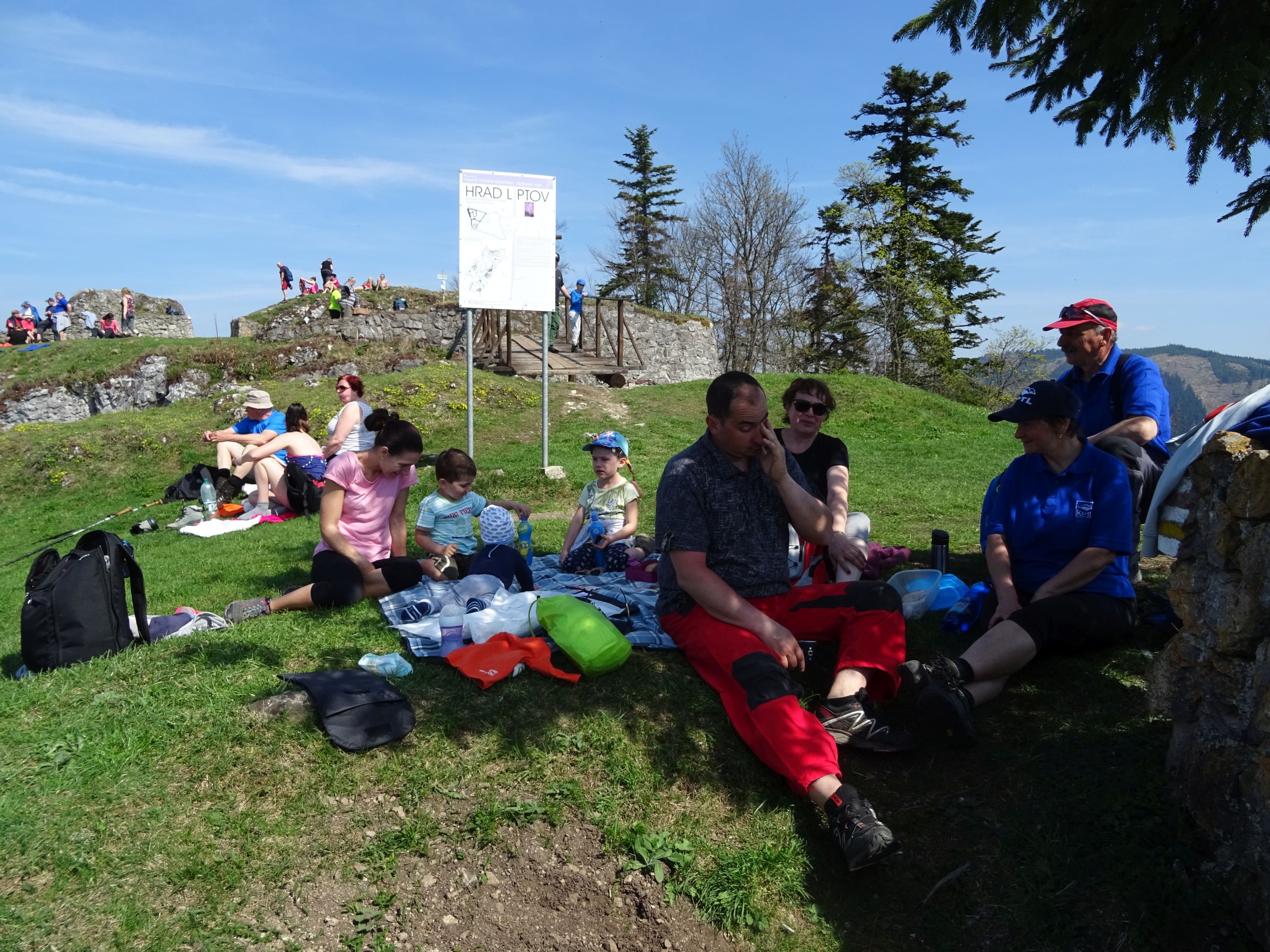 Každý si našiel svoje miestečko na oddych a mohli sme začať doslova „piknikovať“. Bohaté zastúpenie mali tentoraz detičky, takže sme si skutočne pripadali ako na rodinnom výlete. Určite, že vynikajúcu pohodu umocnilo predovšetkým veľmi príjemné počasie a tak sme odchod z hradu stále odkladali.