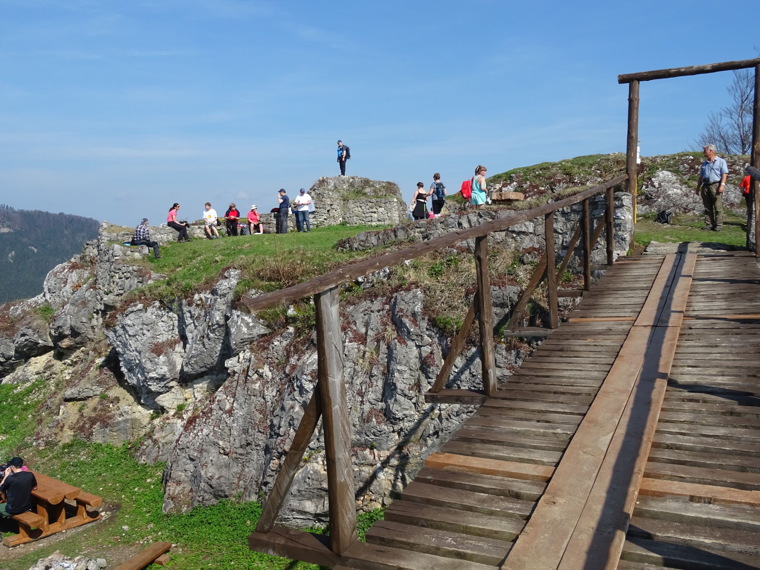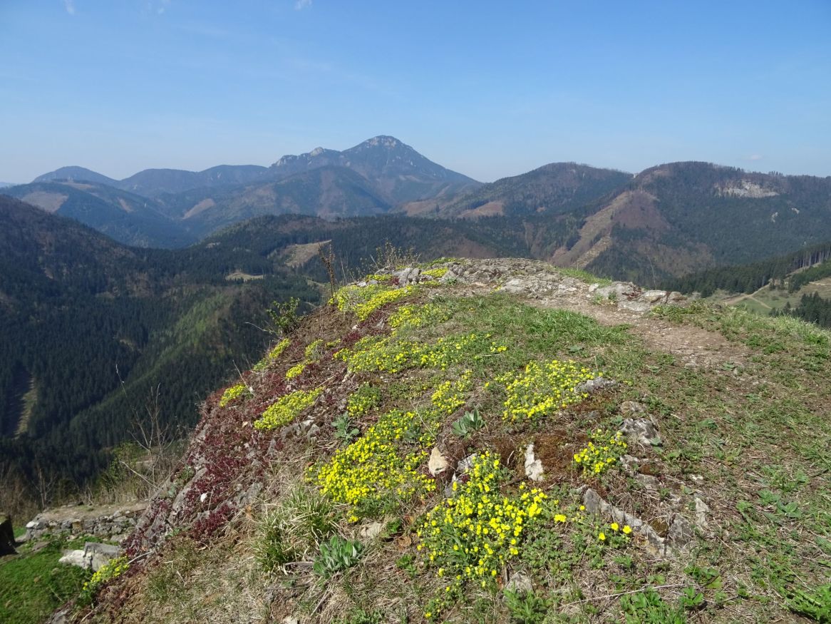 Potom ale prišlo veľmi príjemné prekvapenie vo veľkosti hradnej plošiny, na ktorej sa nachádzajú len zbytky hradných múrov. Nech sme sa pozreli na ktorúkoľvek stranu, výhľad bol nádherný.